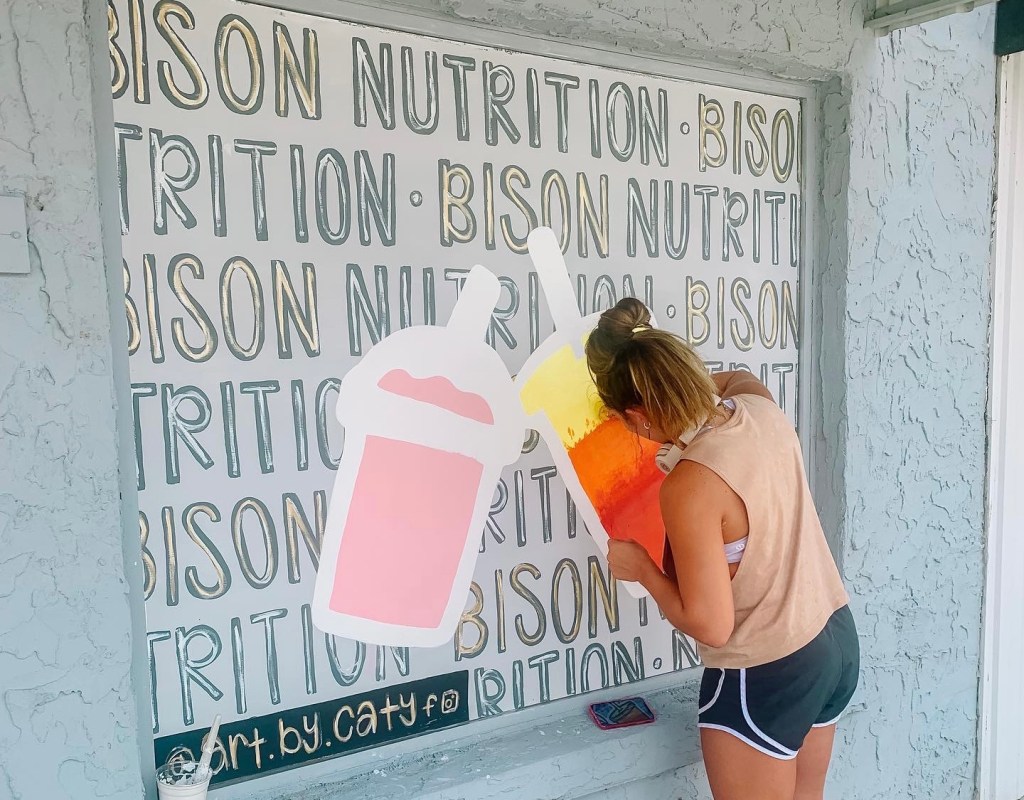 The summer before college, I started giving private softball lessons. It paid pretty well, and I had fun doing it, so I did this the whole summer. I also created a business called Art by Caty. I did everything from digital minimalist portraits to hand-painted canvases. I was able to carry this venture over to college. I made tons of dorm decor and birthday signs. The next summer, I even got a gig to do a mural. I was so excited, but unfortunately, it didn’t work out. I took 13 college hours this summer, so I still didn’t have enough time for a full-time job. This was when I started picking up window painting jobs, mostly for local businesses and family friends. It was a hit! But it wasn’t making me happy. This led me to decide that I enjoyed painting as a hobby, not a job.